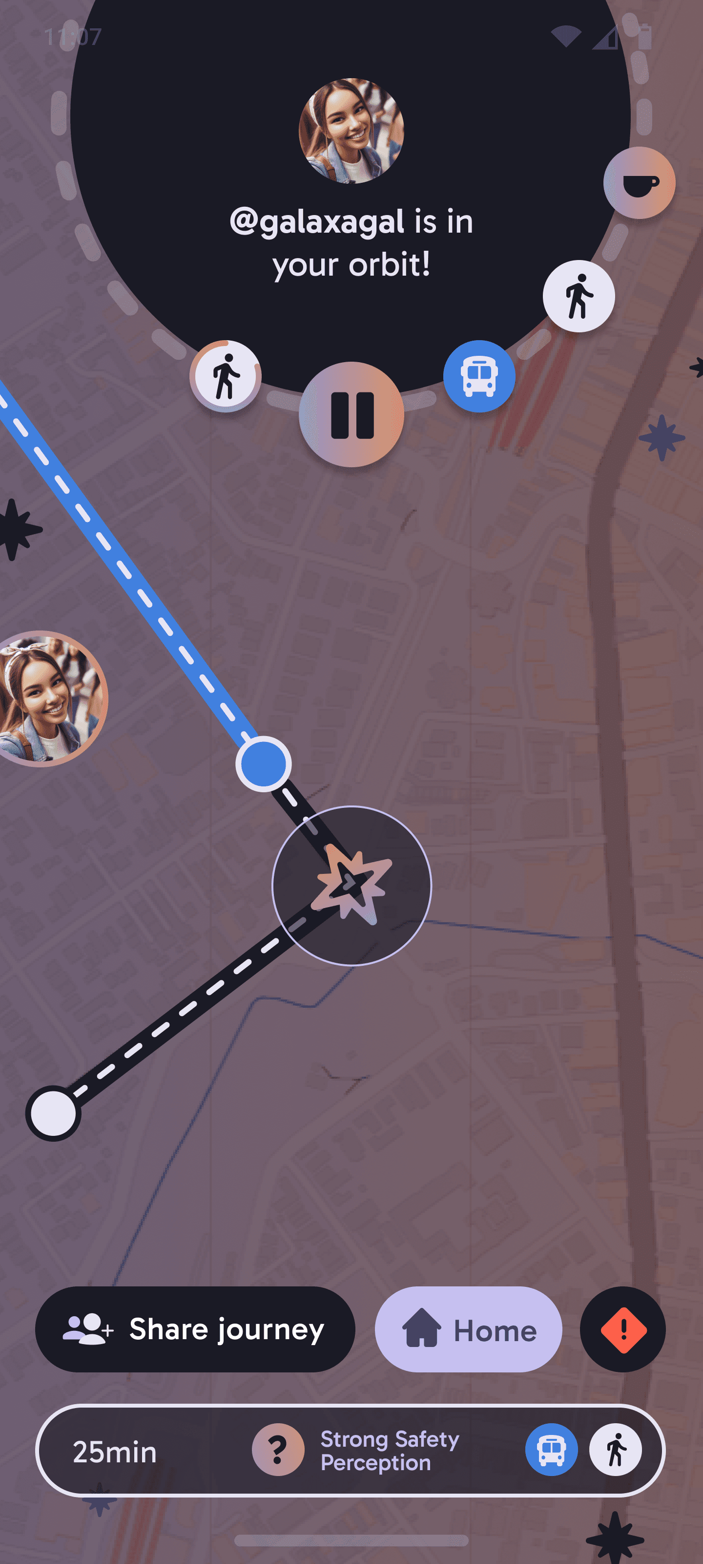 Galaxa resolves the core problem with improving public spaces through its space navigation metaphor; helping women to navigate the public spaces around them, and sharing their experiences so councils and businesses can improve them.