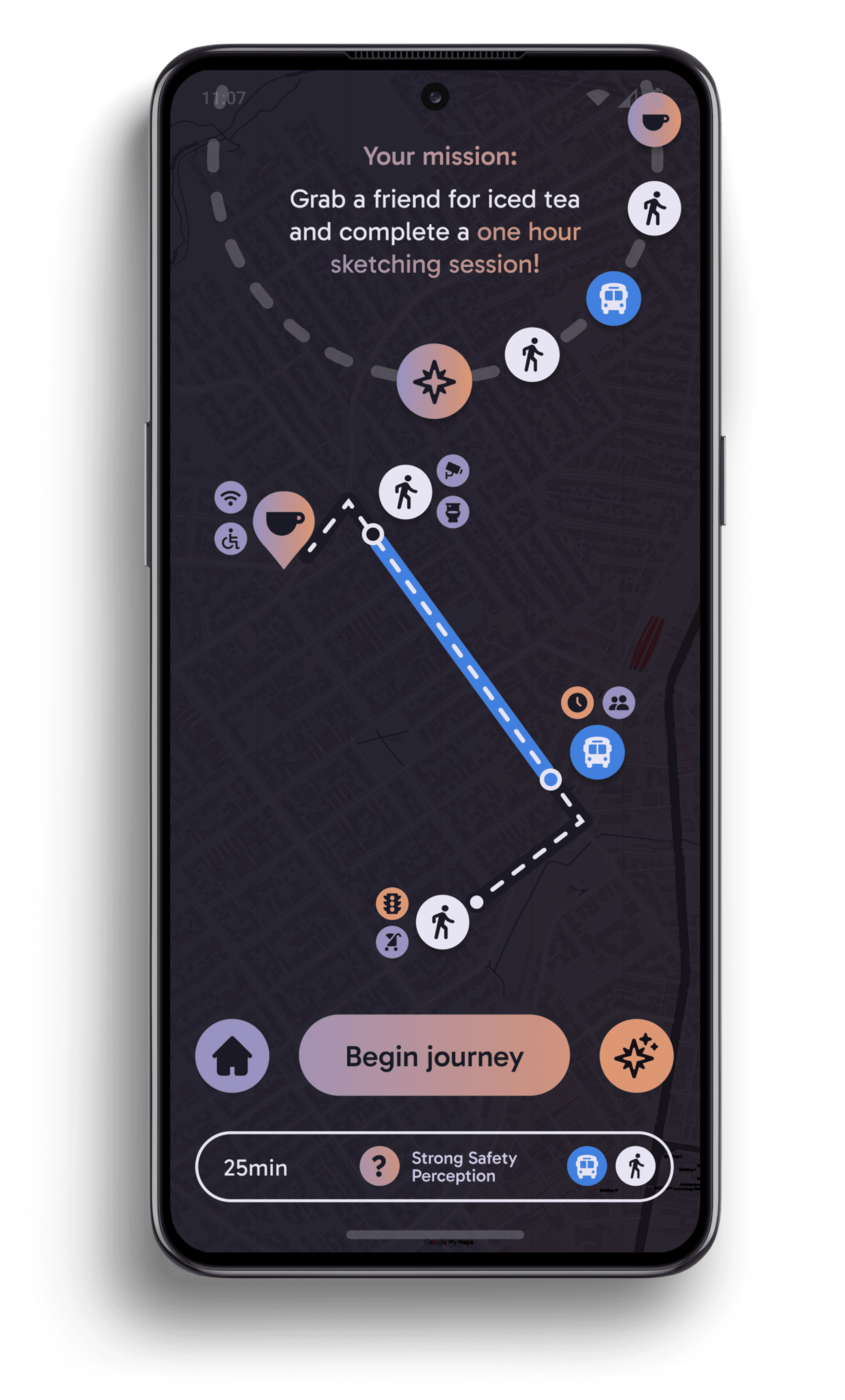 I built an exploration app with a focus on perception of safety for women to explore public spaces confidently while providing councils with crowdsourced data.